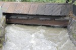 - tømmer og greiner viklet inn mellom søyler og stålbjelker i gangveien under jernbanebru og Fagerlia bru
