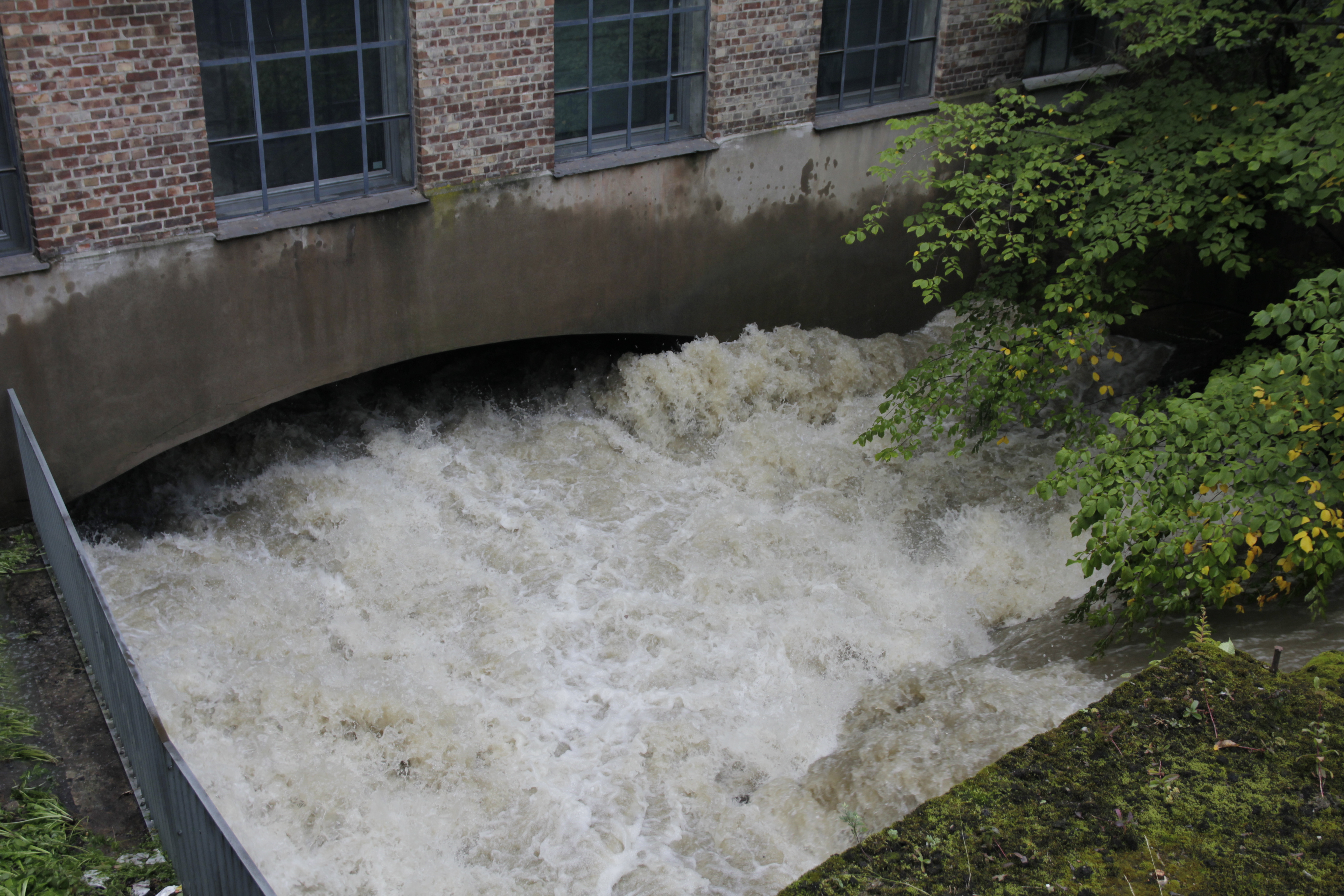 _MG_0043 Published 06/09/2015 at 5184 × 3456 in Naboelva Alna flomstor 2. september ← Forrige Neste → Såvidt plass til vannmassene under tekstilfabrikken i Brynsengfaret 4