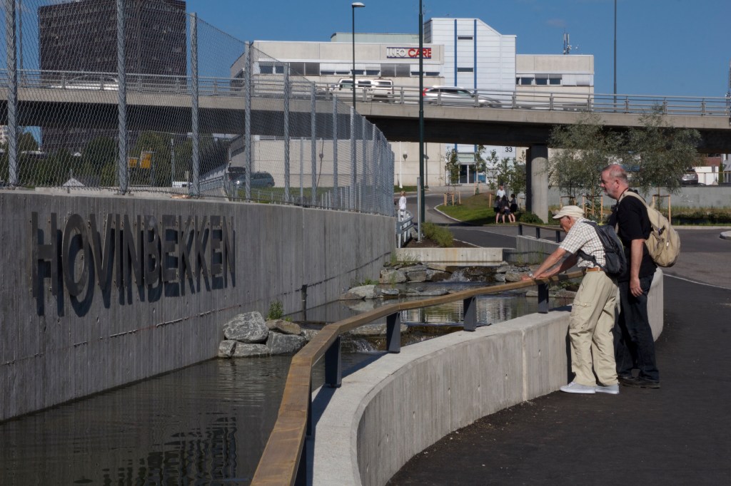 Nederst på deres presentasjon av den nå vel etablerte Hovinbekken finnes en nyere video som viser hvordan beplantningen har utviklet seg siden bildene over, samt den prisbelønte bekkens løp videre ned til Ensjø.