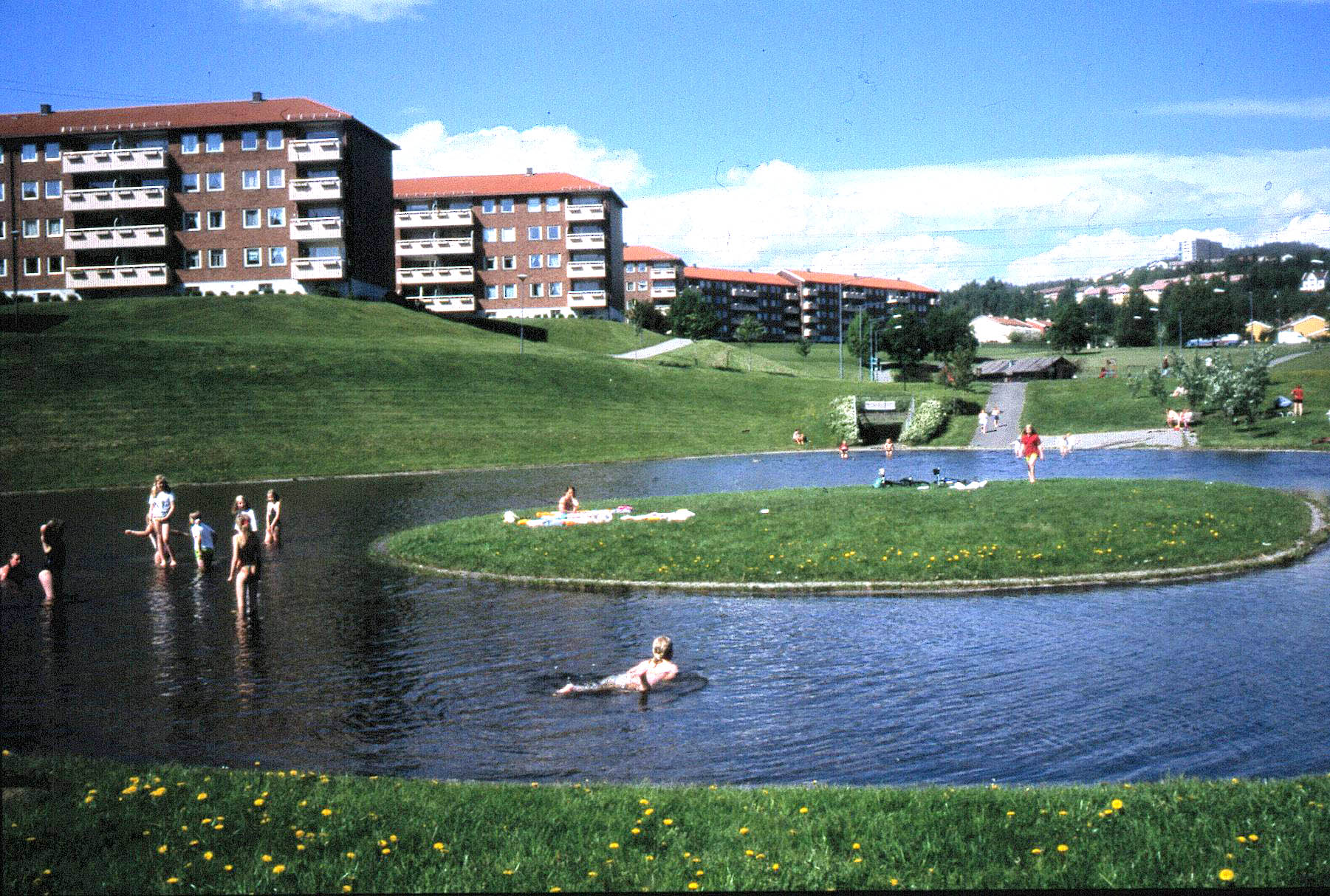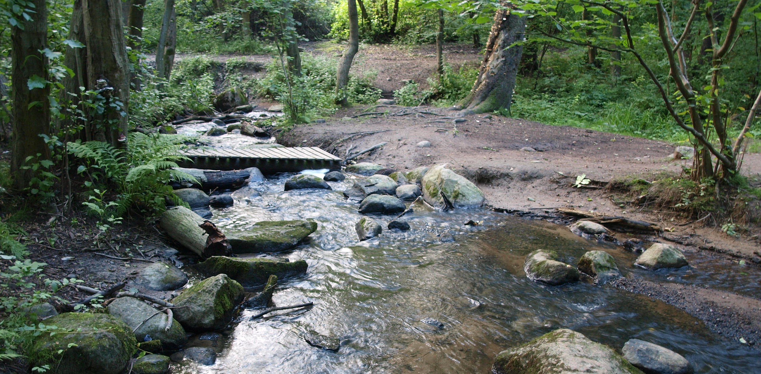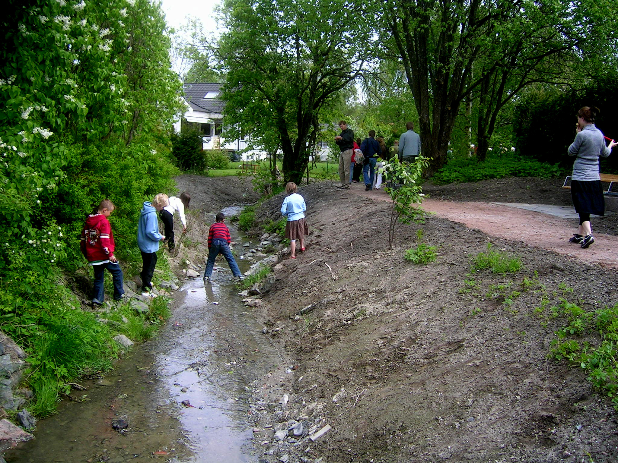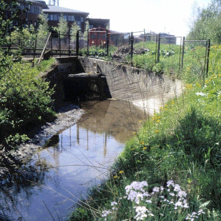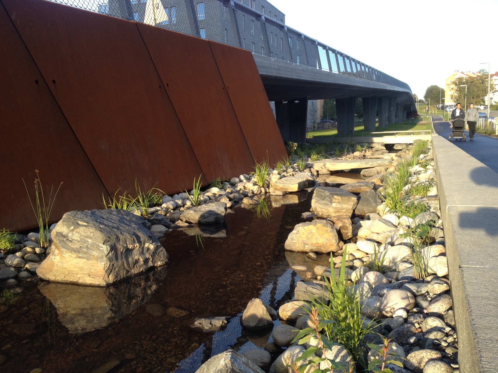 Bekken forsvinner i tunnel under T-banelinja på Risløkka.