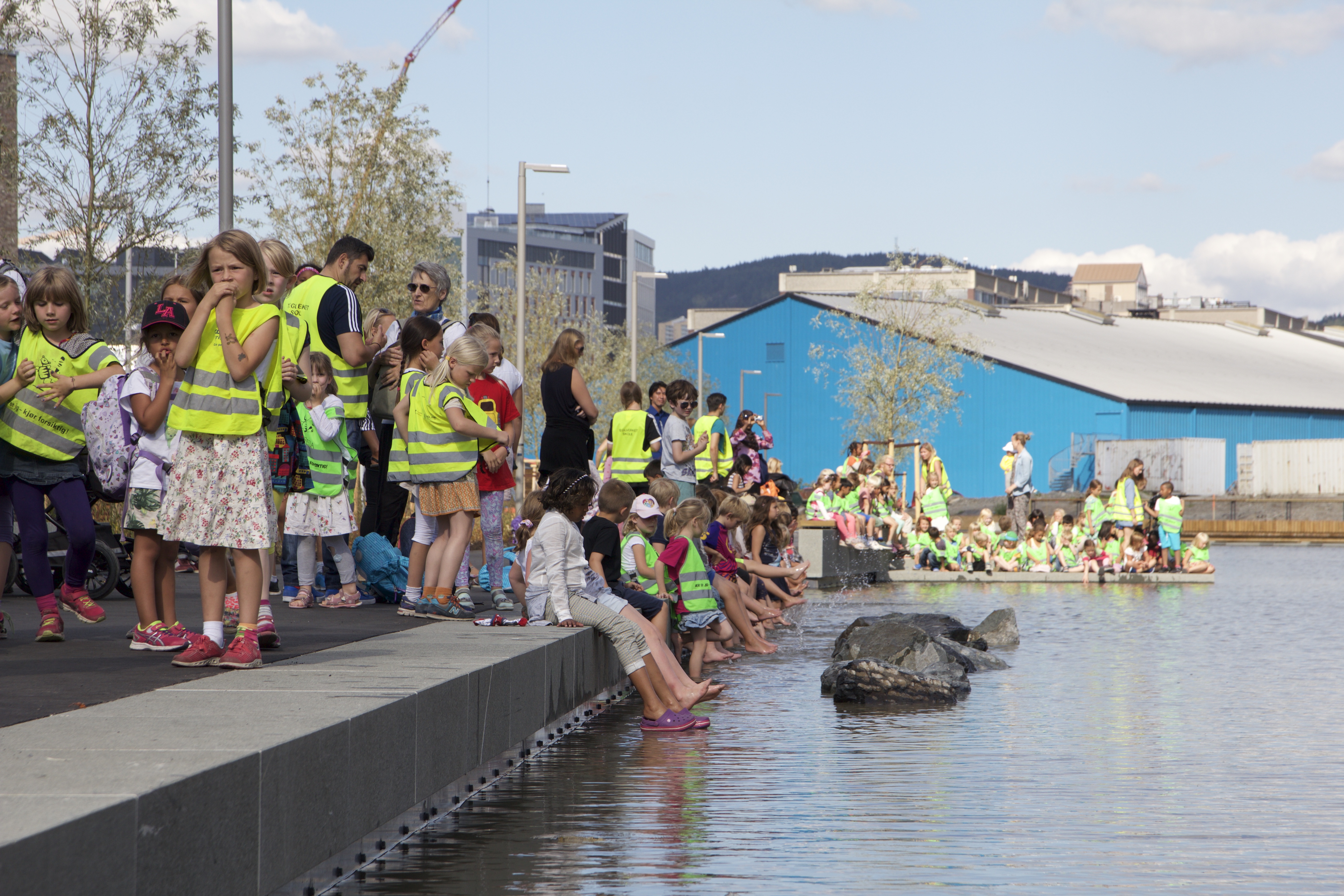 Vanskelig å holde seg på det tørre når man går på ny skole like ved.